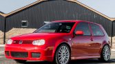 This 2004 Volkswagen R32 is finished in Tornado Red over a black leather interior and is powered by a 3.2-liter VR6 linked with a six-speed manual transaxle and 4Motion all-wheel drive. Additional equipment and modifications include a glass sunroof, an aftermarket intake, coilover suspension, adjustable front camber plates, heated Konig front seats, and 18” alloy wheels. The car was sold new from Gensinger Motors in Clifton, New Jersey, and was acquired by the seller in February of 2020. Work…