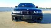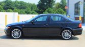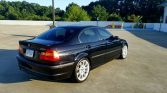 The car is finished in Jet Black and features the ZHP package which added revised bumper covers, side skirts, and a rear deck spoiler compared to the standard 330i model. Additional exterior details include xenon headlights with washers, fog lights, a sunroof, and window tint.