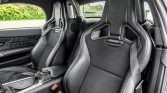 Forged 19″ BBS LM-R wheels are finished in silver with polished lips and black-and-gold BBS-branded center caps and are wrapped in staggered-width Michelin Pilot Sport 4S tires that show date codes from 2017. Stopping power is provided by StopTech front calipers and Brembo rear calipers paired with slotted rotors at all four corners, and the suspension has been modified with AC Schnitzer sway bars and TC Kline Racing double-adjustable coilovers.