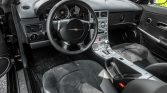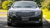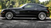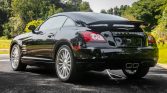 The Crossfire shares its platform with the R170 generation of the Mercedes-Benz SLK, and this example is finished in black with silver trim accents. Exterior features include a revised front fascia, fog lights, dual central exhaust finishers, and a fixed rear spoiler in place of the base model’s motorized unit.