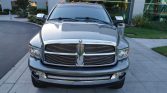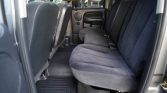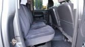 The Quad Cab interior features two rows of bench seats upholstered in Dark Slate Gray cloth, and interior appointments include a power-adjustable driver’s seat, an Infinity sound system, air conditioning, and a JVC head unit. Blue interior lights, WeatherTech floor liners, a back-up camera, a Hayes trailer brake controller, an aftermarket horn, and a GT Bully Dog fuel tuner have also been installed.