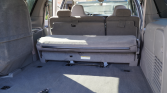 The cabin features seating trimmed in gray cloth with matching carpets and rubber floormats. Interior equipment includes air conditioning, rear climate control, cruise control, a power point, and a six-disc CD stereo. The driver’s seat cushion and cover have reportedly been replaced.