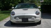 This 2005 Ford Thunderbird is #54 of 1,500 50th Anniversary models produced for the model year, all of which were finished in Cashmere Tri-Coat Metallic over cashmere-colored leather and interior accents. The car was sold new by Montrose Ford in Akron, Ohio and reportedly remained with the original owner until its recent acquisition by the seller. Power is provided by a 3.9-liter V8 paired with a five-speed automatic transmission, and equipment includes a body-color removable hardtop, a Medium Light Stone soft top, machine-finished 17″ alloy wheels, automatic climate control, cruise control, and an Audiophile sound system. An oil change was carried out in preparation for the sale.