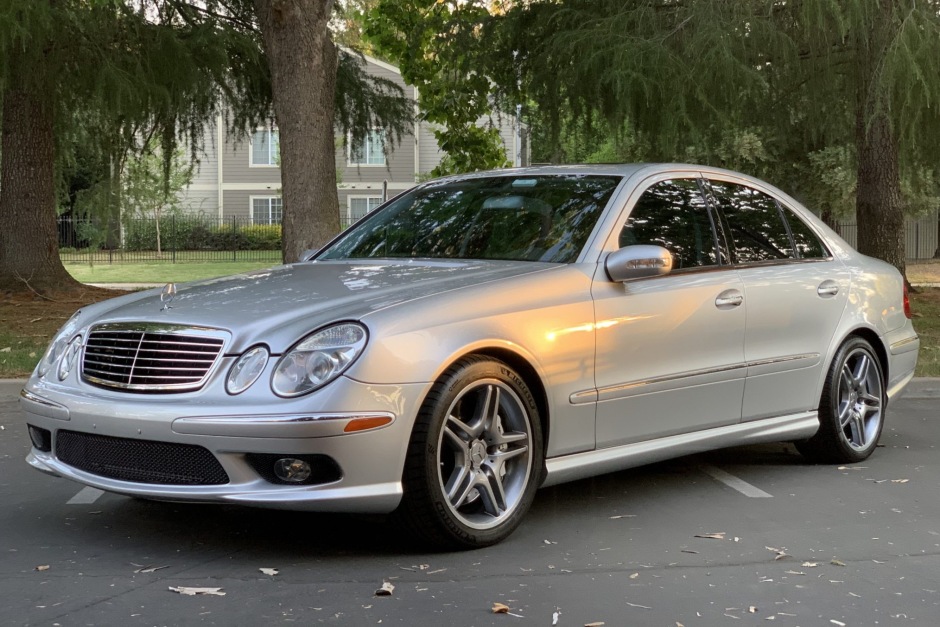 This 2005 Mercedes-Benz E55 AMG has spent much of its life in Oregon and was acquired by the seller in January of 2021. Now showing 57k miles, the car is finished in silver over Charcoal leather, and power comes from a supercharged 5.4-liter V8 paired with a five-speed automatic transmission. Equipment includes AMG 18″ wheels, AIRMATIC air suspension, the AMG Styling Package, heated and power-adjustable front seats, four-zone automatic climate control, COMAND infotainment with navigation, and Harman Kardon audio. Maintenance in May 2021 consisted of changing the transmission fluid and engine oil.