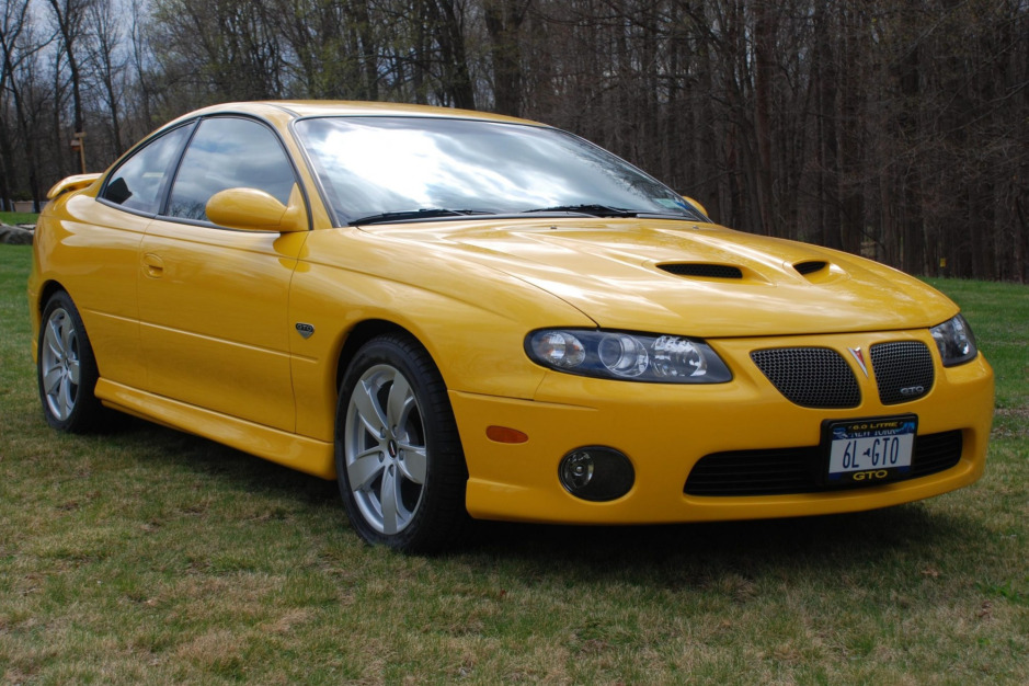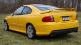 This 2005 Pontiac GTO is finished in Yellow Jacket over anthracite leather and is powered by a 6.0-liter LS2 V8 linked with a six-speed manual transmission and a limited-slip differential. Additional equipment includes air conditioning, cruise control, a rear spoiler, fog lights, 17″ alloy wheels, dual hood scoops, power-adjustable front seats, a leather-wrapped steering wheel, and a ten speaker audio system with a six-disc CD changer. The car was purchased new by the seller at Geis Auto…