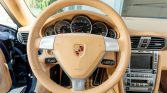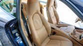 Five-spoke 18″ wheels wear painted Porsche center crests and are fitted with Bridgestone Potenza tires measuring 235/40 up front and 265/40 at the rear. The car is equipped with black four-piston brake calipers at each corner and cross-drilled rotors.