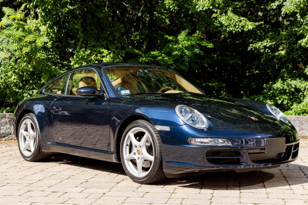 This 2005 Porsche 911 Carrera is finished in Midnight Blue Metallic over Sand Beige leather and is powered by a 3.6-liter flat-six mated to a six-speed manual transaxle. Equipment includes bi-xenon headlights, 18″ five-spoke wheels, a sunroof, heated and power-adjustable seats, Porsche Communication Management with navigation, and a Bose high-end audio system. The car was first registered in Rhode Island and relocated to Massachusetts in 2007 before being acquired by the seller in 2021.
