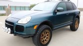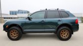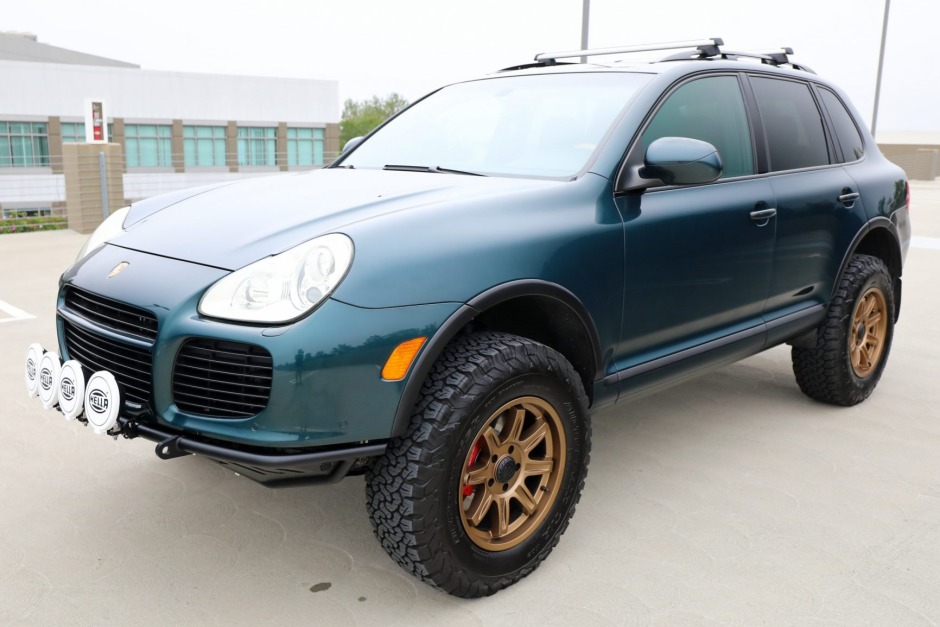 This 2005 Porsche Cayenne Turbo is finished in Lago Green over Palm Green leather upholstery and is powered by a twin-turbocharged 4.5L V8 driving all four wheels through a six-speed automatic transmission. It was originally registered in Hawaii and spent time in California and Nevada before being acquired by the seller earlier this year. Modifications include a 3” Eurowise lift kit, subframe spacers, 18” Alpha wheels, quad Hella fog lights, a front skid plate, and a Pioneer…