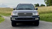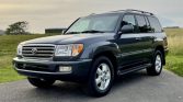 This 2005 Toyota Land Cruiser is finished in Galactic Gray Mica over gray leather and powered by a 4.7-liter V8 paired with a five-speed automatic transmission, a dual-range transfer case, and a locking center differential. Additional equipment includes 18″ wheels, a sunroof, a roof rack, a receiver hitch, navigation, a rear entertainment screen, automatic climate control, and a JBL audio system with a six-CD and DVD changer. The truck was sold new by Beltway Toyota in Temple…
