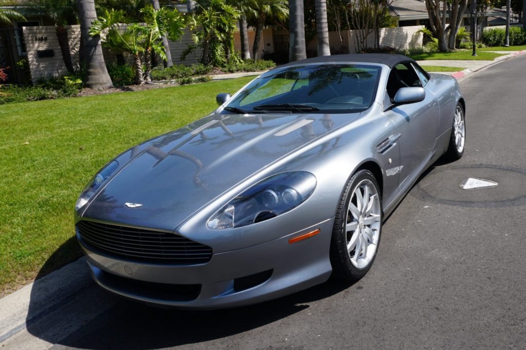 This 2006 Aston Martin DB9 Volante is finished in special-order Grigio Titanio over Obsidian Black leather and is powered by a 5.9-liter V12 paired with a six-speed automatic transaxle. Equipment includes a limited-slip differential, a power-retractable soft top, a Linn surround-sound system, automatic climate control, a navigation system, parking sensors, and heated front seats. The car was first registered in Massachusetts, and later spent time in Florida and Michigan before it was relocated to California by the seller. It now has 26k miles, and service in 2021 included refinishing the undertray and replacement of the lower front spoiler as well as the tires.