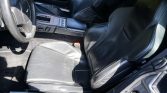 The cabin features Obsidian Black leather upholstery with contrast stitching that extends from the seats to the dashboard and center console. Amenities include walnut wood veneer trim, automatic climate control, a pop-up navigation screen, a Linn 260-watt surround-sound system, and heated front seats. Wear is visible on the outer bolster of the driver’s seat.