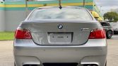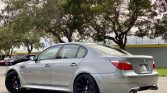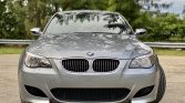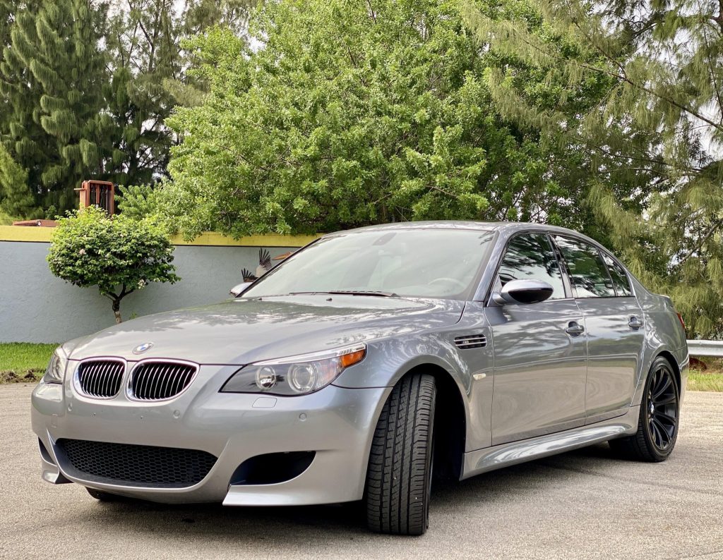 This 2006 BMW M5 is finished in Silver Gray Metallic over black Merino leather and is powered by a 5.0-liter V10 paired with a seven-speed SMG automated transmission. Features include black 19″ wheels, adaptive xenon headlights, a powered-sunroof, Comfort Access, a head-up display, power-adjustable heated front seats, dual-zone automatic climate control, Park Distance Control, a six-disc CD changer, and iDrive with navigation.
