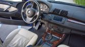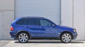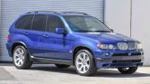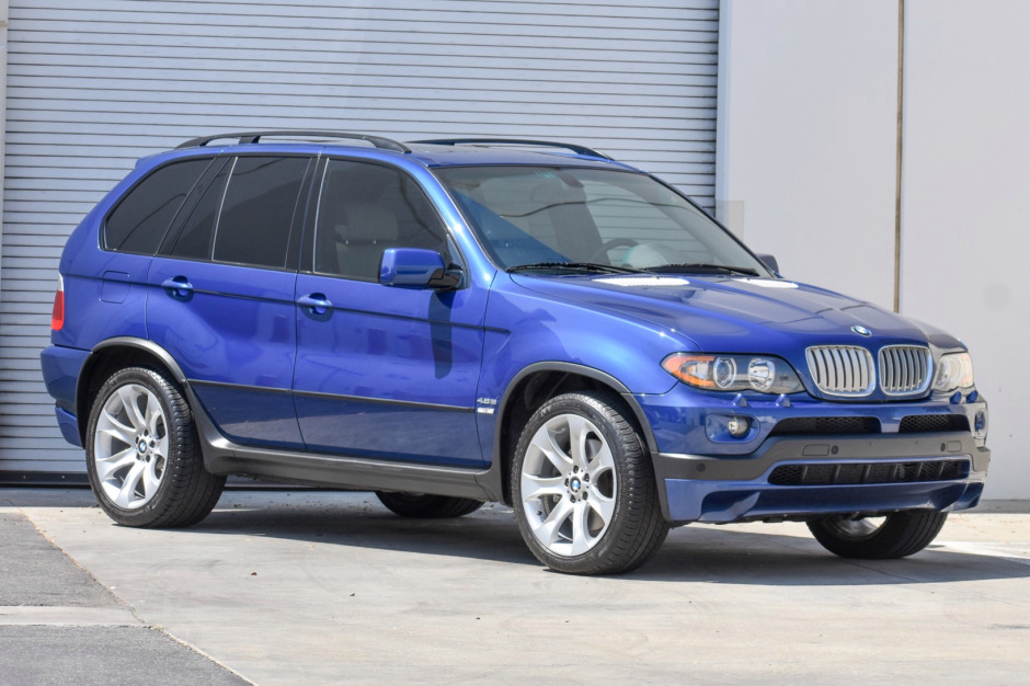 This 2006 BMW X5 4.8iS is finished in Le Mans Blue Metallic over beige leather, and it is powered by a 4.8-liter V8 driving all four wheels through a six-speed automatic transmission. Equipment includes 20″ wheels, adaptive bi-xenon headlights, a panoramic moonroof, dual-zone automatic climate control, a premium audio system, two-row heated seating, Park Distance Control, navigation, and rear-window sunshades.