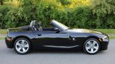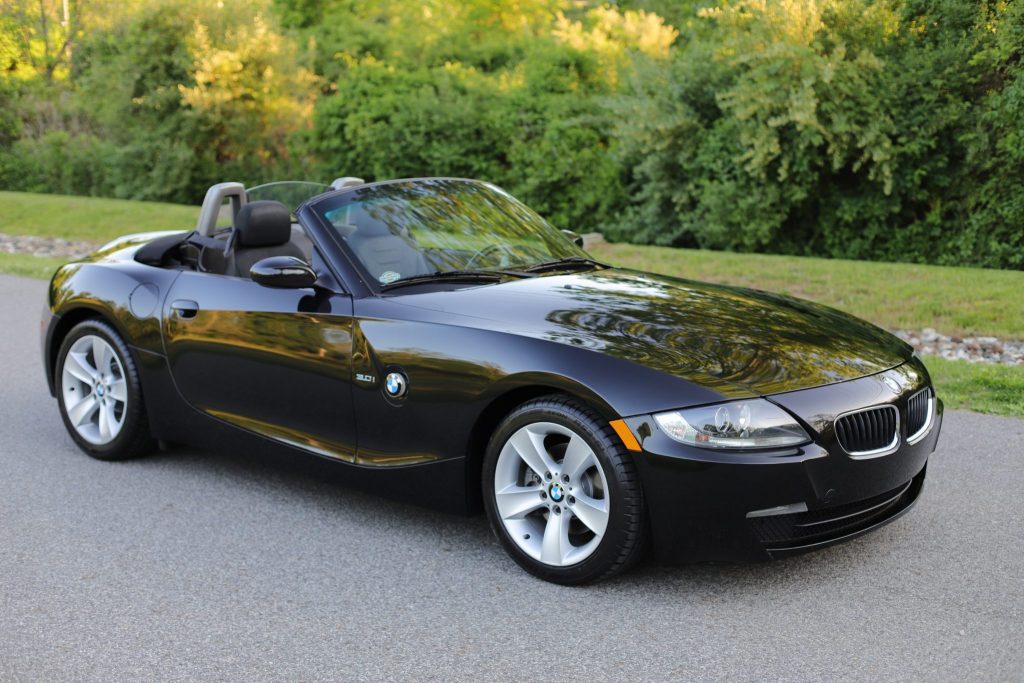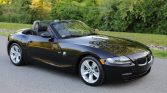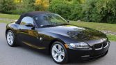 This 2006 BMW Z4 3.0i roadster is finished in Black Sapphire Metallic over black SensaTec and is powered by a 3.0-liter inline-six paired with a six-speed manual transmission. Equipment includes a black soft top, the Sport Package, cruise control, air conditioning, automatic headlamps, and power windows, locks, and mirrors.