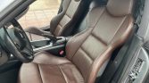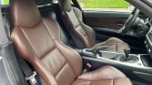 The cabin features M sport seats upholstered in brown Nappa leather with matching door panels, black carpeting, and M-branded floor mats. Features include brushed aluminum trim on the doors, dashboard, and center console as well as stainless steel M-branded door sill covers. Equipment includes power-operated side mirrors, manually-adjustable heated seats, automatic climate control, navigation, and a HiFi audio system with six-disc CD changer.