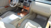 The cabin features heated power-adjustable seats upholstered in Shale leather along with a matching lower dash, door panels, and carpeting. Amenities include a head-up display, dual-zone automatic climate control, eucalyptus wood trim, adjustable lumbar supports, adaptive cruise control, and a Bose premium audio system with satellite radio connectivity. The door sill plates designate the car as #144 of 250 Star Black Limited Editions.