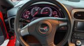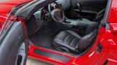 The car is finished in Victory Red (74U) and features Z06-specific carbon fiber fenders with enlarged vents as well as integrated air inlets in the nose and quarter panels. Additional exterior equipment includes xenon headlights, fog lamps, and polished quad exhaust outlets.