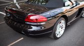 The car is finished in Viper Black Clearcoat and features dual roll hoops, faired side-exit exhaust pipes, and a black soft top that is photographed both lowered and raised.