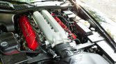 Polished 18″ front and 19″ rear wheels are mounted with staggered-width Michelin Pilot Sport tires. The car rides on fully independent suspension, and braking is from 14″ rotors with red four-piston calipers at each corner.