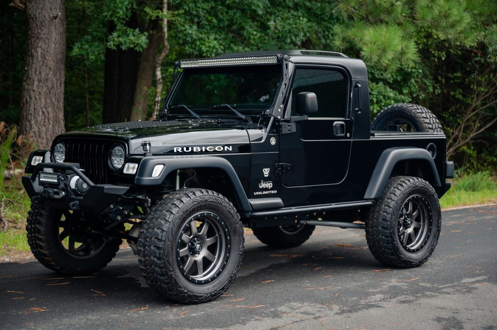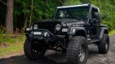 This 2006 Jeep Wrangler Unlimited is powered by a turbocharged 4.0-liter inline-six paired with a four-speed automatic transmission, a dual-range transfer case, and G2 Dana 44 front and rear axles with ARB locking differentials. The truck is finished in black over a matching interior, and additional equipment includes air conditioning, cruise control, and black 20″ Fuel Trophy wheels along with an AEV half-cab conversion with a mid-gate, a Banks Power turbo, intake, exhaust, and methanol injection system,…