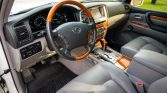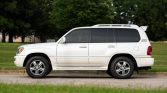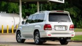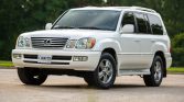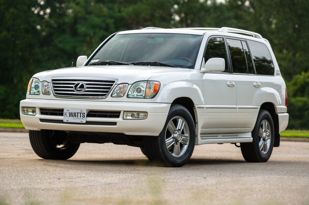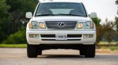 This 2006 Lexus LX470 is finished in Crystal White over gray leather and powered by a 4.7-liter V8 paired with a five-speed automatic transmission, a dual-range transfer case, and a locking center differential. Additional equipment includes 18″ alloy wheels, Adaptive Variable Suspension with Adjustable Height Control, power-adjustable heated front seats, front and rear automatic climate control, third-row seating, navigation, a Mark Levinson sound system, a sunroof, a receiver hitch, and a roof rack with cross bars. The…