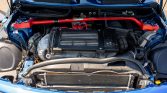 The supercharged and intercooled 1.6-liter inline-four is said to have been modified with a Madness Motorworks Stage 2 tuning pack, an ECU tune, an uprated supercharger pulley, MSD ignition and spark plug wires, NGK high-performance spark plugs, and an Alta Mini Performance cold-air intake with a heat shield. Structural modifications to the engine bay include an OMP strut tower brace and under-engine brace. The seller states that the oil was changed in April 2021 and that a coolant flush was completed in May 2020.