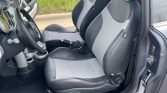 The cabin features heated sport seats upholstered in black leather with red stitching and Checkmate cloth inserts. The GP model featured a chassis brace in place of the rear seat, and additional equipment includes air conditioning, cruise control, and an Alpine stereo.