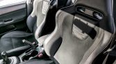The cabin features front Recaro bucket seats with black leather upholstery and Alcantara inserts. Equipment includes a JVC CD stereo system, air conditioning, and Lancer Evolution-branded floor mats.