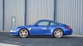 Compared to other 997.1 Carrera models, the 4S features wider rear bodywork. This example is finished in Cobalt Blue Metallic, and equipment includes headlight washers, a power sunroof, automatically dimming side mirrors, a speed-activated rear spoiler, quad exhaust outlets, and a silver Porsche-crest nose emblem.