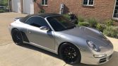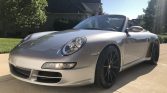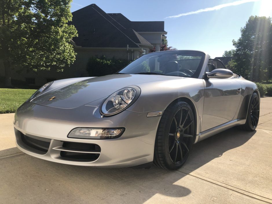 This 2006 Porsche 911 Carrera S Cabriolet was sold new in California and remained registered there until the seller acquired it in February 2020. The car is finished in silver over black full leather and is powered by a 3.8-liter flat-six paired with a six-speed manual transaxle. Equipment includes a black convertible top, Forgestar 19″ wheels, power-adjustable and heated front seats, the Bose High-End Sound package, and carbon-fiber interior trim.