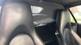 The cabin is upholstered in black full leather and features carbon-fiber accents on the shift knob, emergency brake handle, and dashboard. Porsche-logo floor mats line the footwells, and amenities include power-adjustable and heated front seats, automatic climate control, PCM with navigation, the Bose High-End Sound package, and a wind deflector.