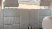 The cabin features seats upholstered in beige leather along with a matching dashboard, carpets, and door panels as well as contrasting dark beige trim. Equipment includes a sunroof, heated front seats, cruise control, navigation, automatic climate control, an aftermarket Pioneer CD stereo, and fold-away third row seats.