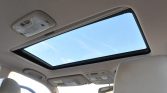 The cabin is upholstered in beige leather and features matching carpets and door panel inserts, a darker upper dashboard, and burl wood veneer aLents. Amenities include heated and power-adjustable front seats, automatic climate control, navigation, cruise control, a back-up camera, JBL audio, and an aftermarket DroneMobile remote starting system.