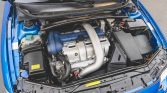 The turbocharged 2.5-liter inline-five features twin intercoolers and variable valve timing, and is said to have been modified with a Contrast stage 1 tune and a 360-degree thrust bearing turbocharger. An oil change was performed in March 2021 and the seller reports the cylinders were shimmed and the head was removed, ported, and polished under prior ownership.