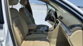 The cabin features seats trimmed in beige leather joined by matching door panels and carpeting along with silver accents. Amenities include a power-adjustable driver seat, dual-zone automatic climate control, a cargo cover with rear vertical sunshade, cruise control, and an Audi Symphony CD stereo.