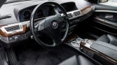 The cabin is trimmed in black Nasca leather (U6SW) with matching door panel inserts and carpets along with an anthracite Alcantara headliner. Amenities include Comfort ALess, BMW Night Vision, dark ash wood trim, navigation, multi-zone automatic climate control, a surround-sound system, front heated and ventilated comfort seats with power-adjustment and an active driver’s seat, heated rear seats, and a rear entertainment system with a separate iDrive controller and headphone jacks.