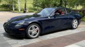 This 2007 Ferrari 612 Scaglietti is finished in Blu Pozzi over Bordeaux leather, and it is powered by a 5.7-liter DOHC V12 paired with a six-speed sequential transaxle. Equipment includes Scuderia Ferrari fender shields, 19″ multi-piece wheels, carbon-fiber interior trim, dual-zone automatic climate control, a navigation system, and a Bose audio system.