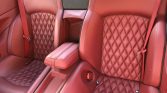 Modular 19″ alloy wheels are mounted with 245/40 front and 265/40 rear Michelin Pilot Super Sport tires. The four-wheel disc brakes feature cross-drilled rotors and red-painted calipers all around.