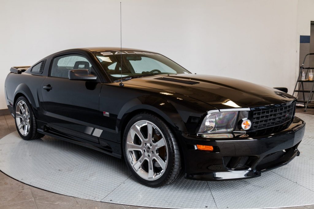 This 2007 Ford Mustang Saleen S281 is finished in black over black leather and powered by a supercharged 4.6-liter V8 mated to a five-speed manual transmission and a limited-slip differential. Equipment includes Saleen bodywork, upgraded suspension components, 20” chrome wheels, a rear wing, dual center-exit exhaust outlets, and a Shaker 500 stereo system. The car was delivered new in New York and acquired by the seller in June 2021.