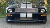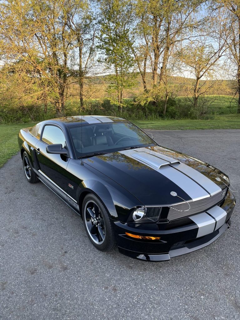 This 2007 Ford Mustang Shelby GT is one of approximately 5,800 built for the 2007 model year and was acquired by the seller in 2016. The car is finished in black with silver stripes over a dark charcoal leather interior, and power is provided by a 4.6-liter V8 paired with a five-speed manual transmission. Equipment includes a limited-slip differential, Ford Racing Handling and Power Upgrade packages, a hood scoop, air conditioning, and a Shaker 500 CD stereo. The…
