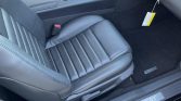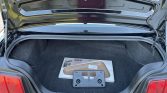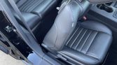The seats are upholstered in dark charcoal leather with patterned trim aLenting the matching dashboard. Amenities include a six-way power-adjustable driver’s seat, air conditioning, a serialized dashboard plaque, and a Shaker 500 CD stereo with satellite radio connectivity and an auxiliary input.