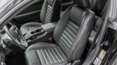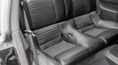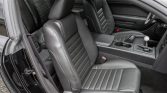 The cabin features seats trimmed in Dark Charcoal leather with matching door panels and carpets. Satin aluminum trim accents the dashboard, and additional appointments include power adjustment for the driver’s seat, a Hurst short-throw shifter, a white shift knob, Shelby GT-branded aluminum doorsill plates, air conditioning, and a Shaker 500 CD stereo.