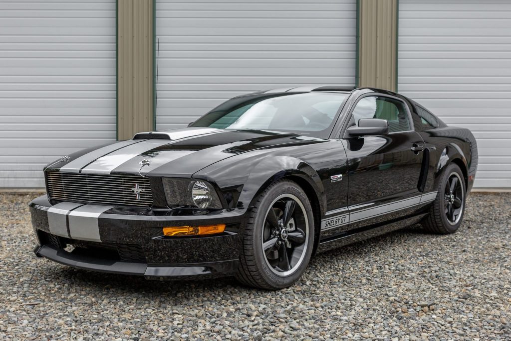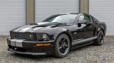 This 2007 Ford Mustang Shelby GT coupe is powered by a 4.6-liter V8 paired with a five-speed manual transmission and a limited-slip differential, and it was modified when new by Shelby Automobiles with their GT package, which included Pro-Cal engine management software, a cold-air intake, an X-pipe exhaust with Ford Racing mufflers, suspension upgrades, revised exterior styling, silver racing stripes, and a Hurst short-throw shifter. Finished in black over charcoal leather, the car was initially delivered to…