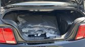 Polished 18″ forged alloy wheels are mounted with Goodyear Eagle F1 tires measuring 255/45 up front and 285/40 at the rear. Stopping power is provided by four-wheel disc brakes with Brembo front calipers, and the car is equipped with an SVT-tuned suspension.
