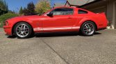 Staggered-width 18″ machined aluminum wheels are mounted with Goodyear Eagle F1 Supercar tires measuring 255/45 up front and 285/40 out back. The SVT-tuned suspension features increased spring, damper, and anti-sway bar rates. Braking is handled by anti-lock Brembo calipers over 14″ vented rotors up front.