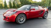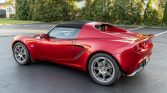 This 2007 Lotus Elise is powered by a supercharged 1.8-liter inline-four paired with a six-speed manual transaxle and is finished in Canyon Red Metallic over Biscuit leather upholstery. Equipment includes two removable roof panels, staggered-diameter forged alloy wheels, air conditioning, a Momo steering wheel, and an Alpine AM/FM/CD stereo.