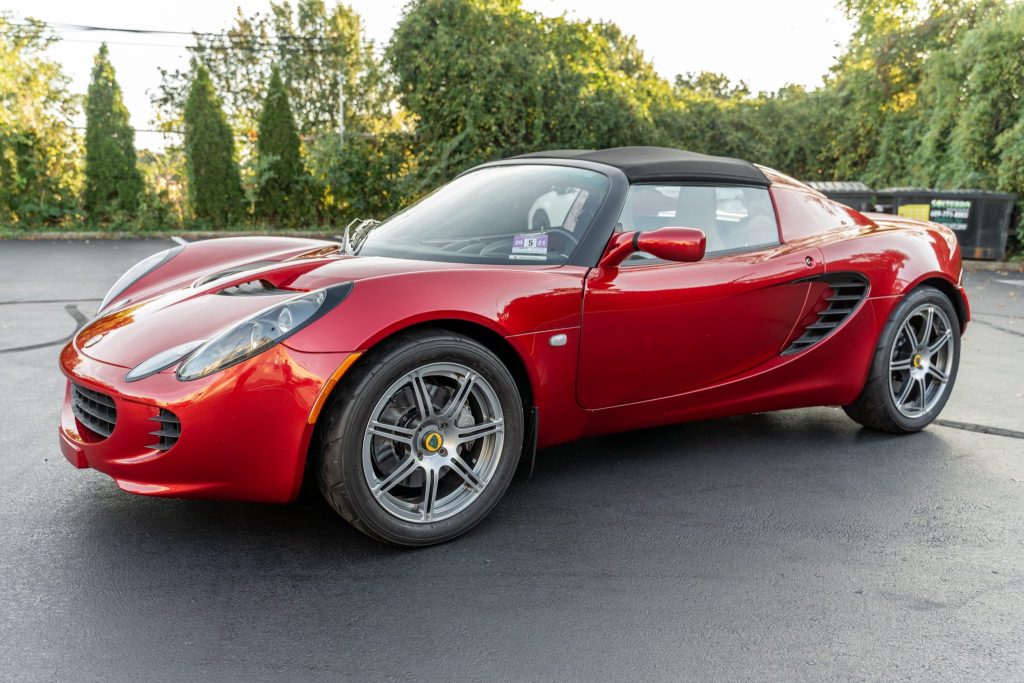 Silver-finished 16″ and 17″ forged alloy wheels are mounted with Yokohama Advan AO48 tires. Braking is handled by Lotus-branded calipers up front and slotted rotors at all four corners.