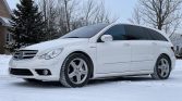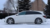 This 2007 Mercedes-Benz R63 AMG is powered by a 6.2-liter V8 paired with seven-speed automatic transmission and 4MATIC all-wheel drive. The car is finished in Alabaster white over beige leather, and equipment includes 20″ AMG wheels, bi-xenon headlights, heated multicontour front seats, aftermarket Android touch screen entertainment and navigation, a panoramic sunroof, a rear-view camera, automatic climate control, Parktronic, and AMG floor mats.
