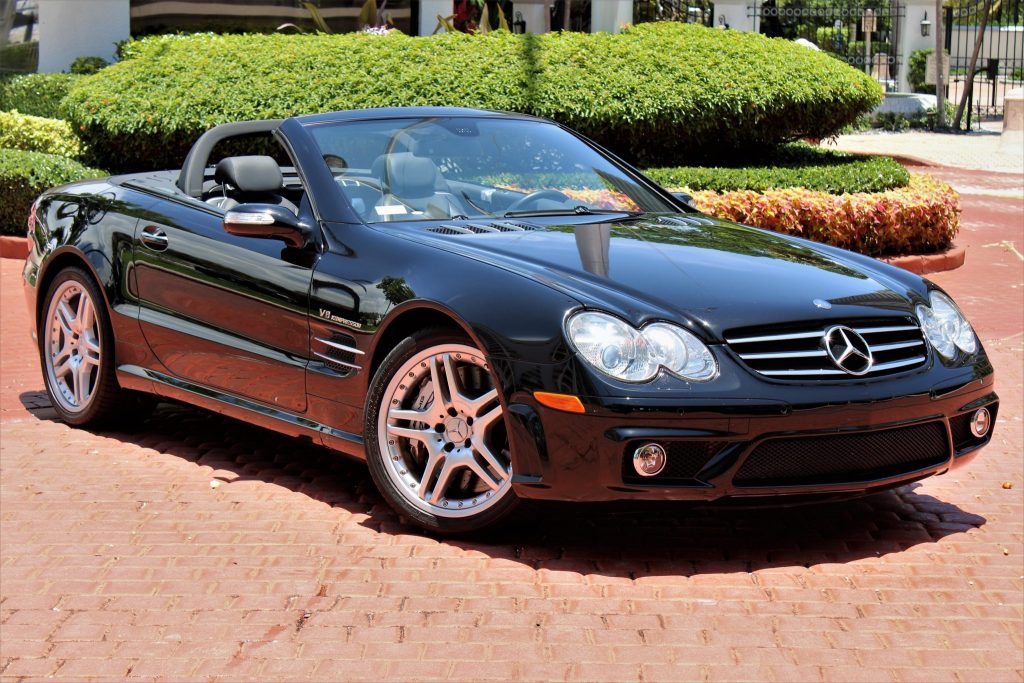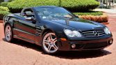 This 2007 Mercedes-Benz SL55 AMG is finished in black over a black leather interior and is powered by a supercharged 5.4-liter V8 paired with a five-speed automatic transmission. The car remained registered in California prior to its June 2021 acquisition by the seller and subsequent relocation to Florida. Equipment includes the P30 Performance Package which adds a limited-slip differential, a second oil cooler, revised bodywork, larger brakes, and multi-piece 19″ wheels. Additional features include a body-color retractable hardtop, carbon-fiber interior trim, COMAND with navigation, a Bose sound system, dual-zone automatic climate control, and heated and ventilated multicontour seats.
