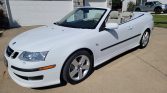 This 2007 Saab 9-3 Aero convertible is powered by a turbocharged 2.8-liter V6 paired with a six-speed automatic transaxle and is finished in Polar White over Parchment leather. Equipment includes Aero bodywork, a power-operated Sand soft top, 17″ alloy wheels, a ReAxs passive rear-wheel steering system, a rear spoiler, xenon headlights, fog lights, and rear parking sensors in addition to heated and power-adjustable front bucket seats, dual-zone automatic climate control, and a CD stereo.